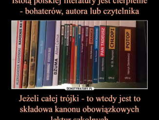 Znalazłam prześmiewczą rycinę na Fb dotyczącą lektur szkolnych. To prawda, że niektóre z nich nie reprezentują wartości znaczących dla współczesnych młodych ludzi, inne nie przystają zupełnie do podstawy programowej. Ale nie jest tak źle. Wielu […]