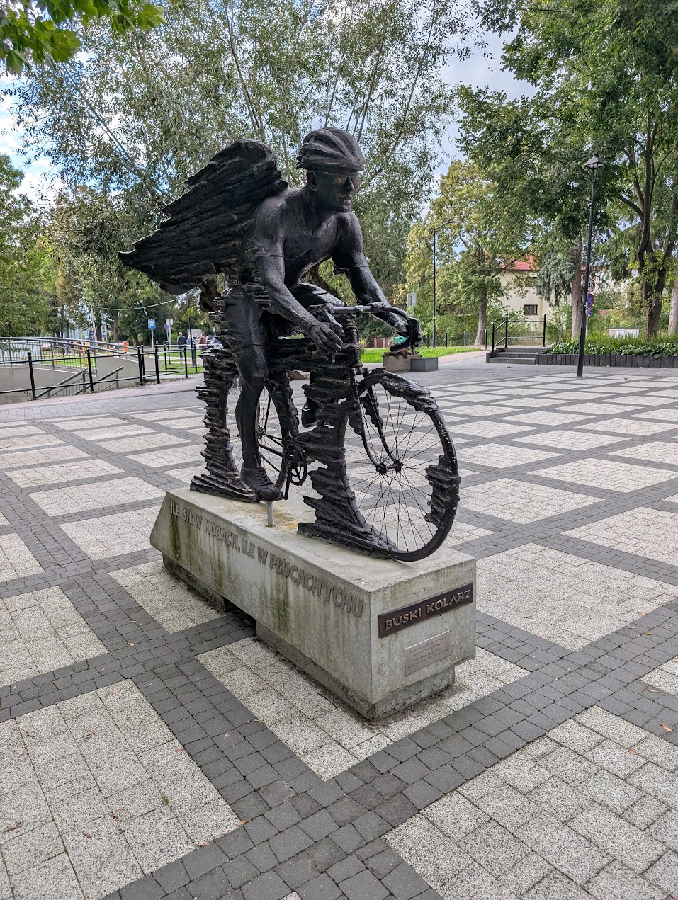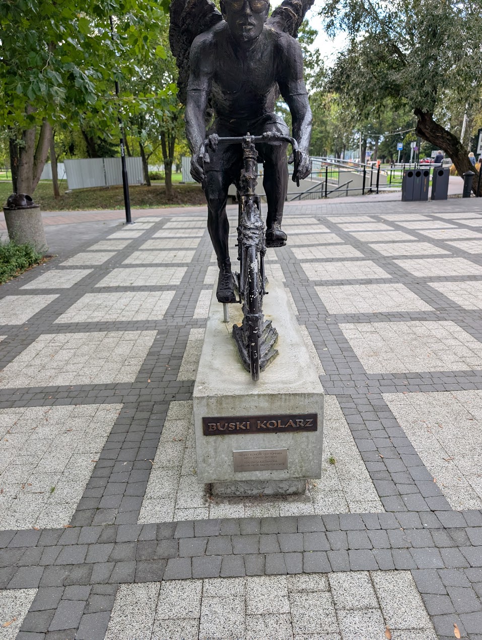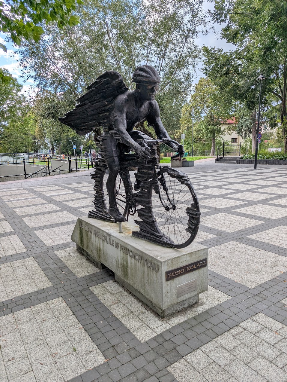 W samym sercu Buska-Zdroju, w otoczeniu zieleni Parku Zdrojowego, znajduje się niezwykły pomnik – „Buski Kolarz”. Rzeźba przedstawia sportowca w trakcie wysiłku, ujętego w dynamicznej pozie. To nie tylko upamiętnienie lokalnych zawodników, ale również ponadczasowy symbol determinacji i walki z własnymi ograniczeniami. Hasło wyryte na cokole – „Wygrać z samym sobą” – przypomina, że prawdziwa rywalizacja toczy się przede wszystkim w nas samych. Autor koncepcji, architekt Tomasz Zatorski, wraz z rzeźbiarzami Sławomirem Mickiem i Krzysztofem Sokołem, stworzyli dzieło, które łączy sztukę z pasją sportową oraz tradycją regionu. Pomnik jest hołdem dla kolarzy związanych z Buskiem-Zdrojem (ich nazwiska wypisane są na pomniku) i zarazem inspiracją dla wszystkich, którzy szukają motywacji do podejmowania codziennych wyzwań. To miejsce, przy którym można zatrzymać się na chwilę, by pomyśleć o tym, że największym zwycięstwem jest pokonanie samego siebie…
