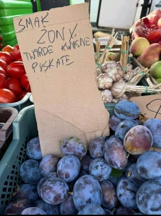 Na bazarku w dzień targowy trafił się kreatywny sprzedawca, który swoje śliwki reklamował porównaniem do żony. Chyba własnej, co tylko potwierdza, że nie jest on także człowiekiem łagodnym i wymaga „pruskiego drylu”. Warto przypomnieć, że bazę dobrego związku tworzy szacunek, troska, dbałość o partnerkę (partnera). Żarty z kogoś a nie z kimś świadczą o braku kultury i niszczą związek…