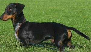 kroczy jamnik w szarawarach,