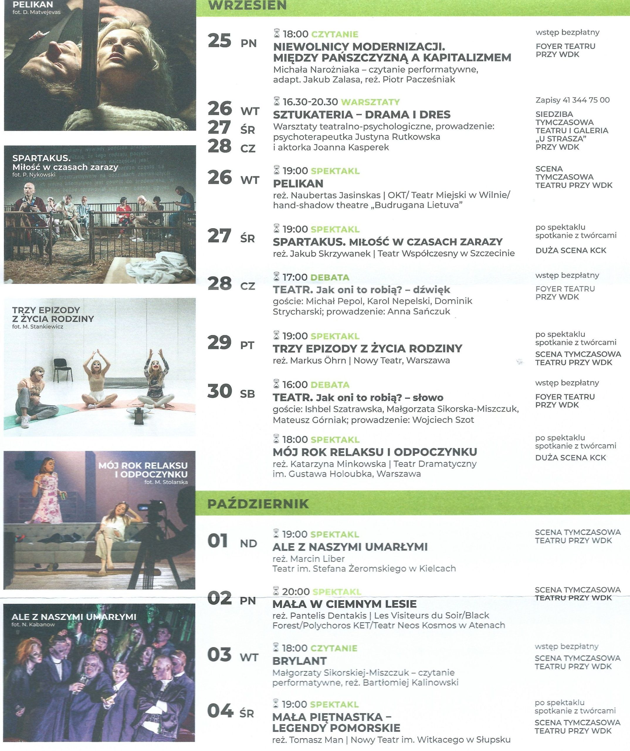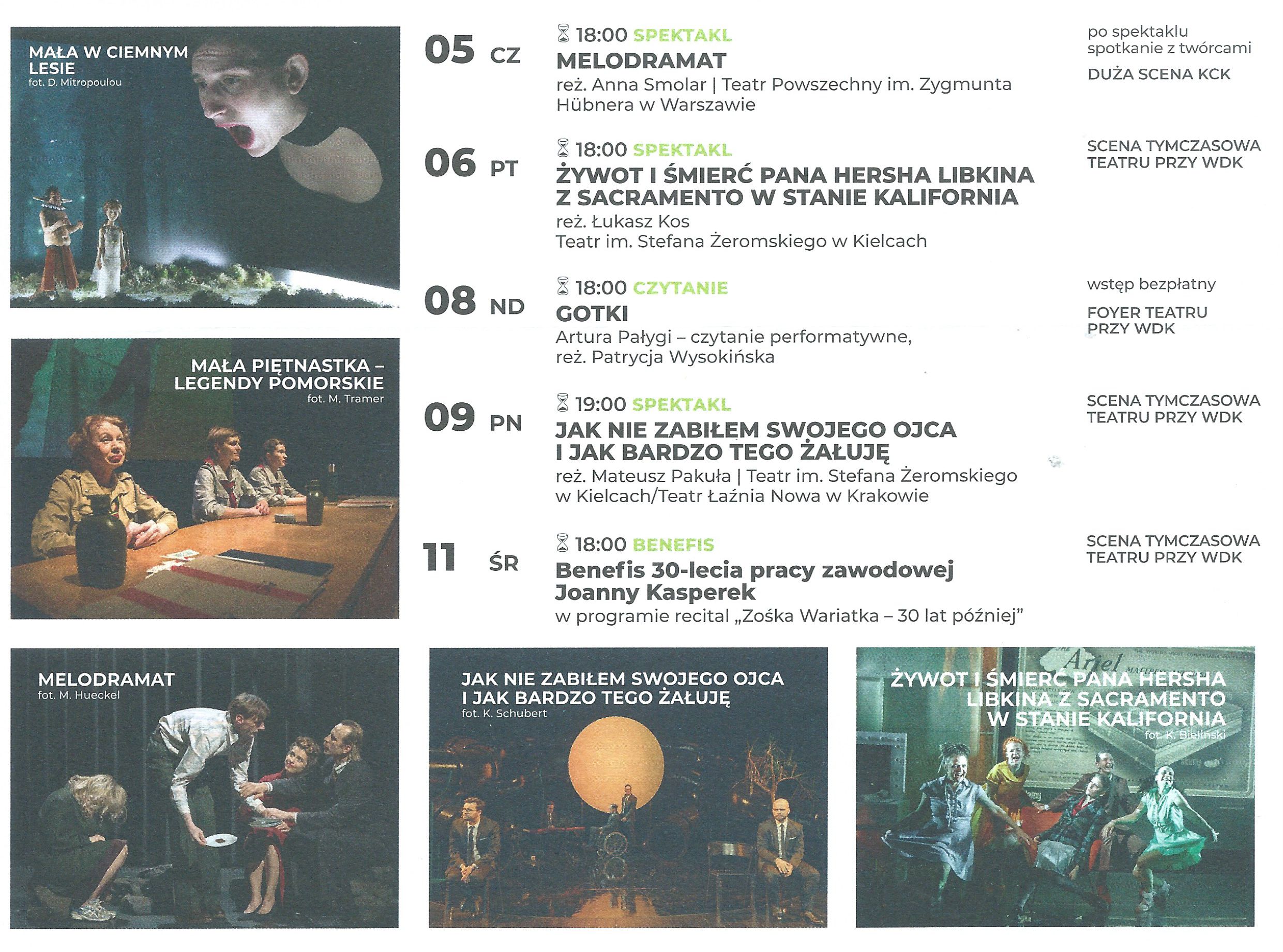Kolejna edycja Kieleckiego Festiwalu odbywa się od 215 września i potrwa do 11 października 2023. A Festiwal to spektakle, spotkania, debaty, czytania. Miejscem spotka jest Siedziba Tymczasowa przy WDK w Kielcach, przy ulicy Ściegiennego 2 (wejście od Legionów). S przy okazji uprzejmie donosimy, że remont głównej siedziby teatru posuwa się naprawdę naprzód. Można już podziwią odnowioną fasadę części budynku.