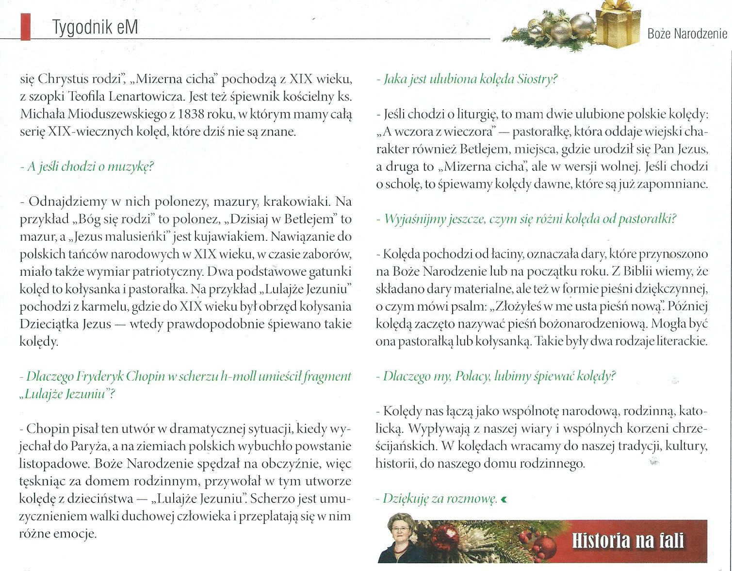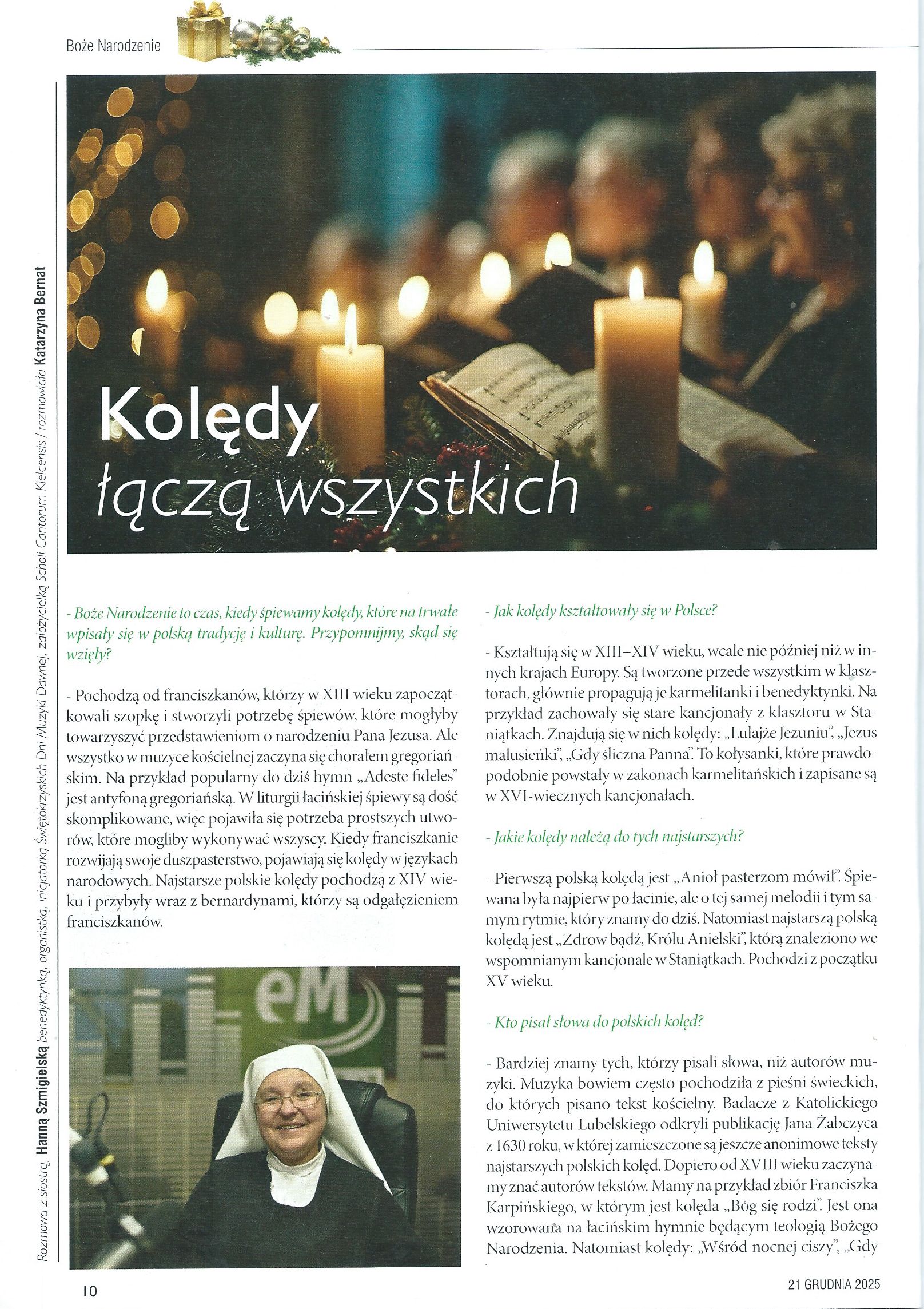 - Znaleźliśmy ciekawy artykuł w Tygodniku eM on kolędowaniu, o którym snuje opowieść s. Hanna Szmigielska w rozmowie z Katarzyną Bernat.