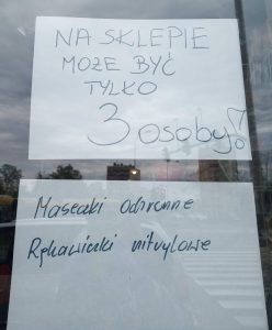 Na szybie drzwi jednego z kieleckich sklepów umieszczono napis „Na sklepie może być tylko 3 osoby”. Niby wszystko proste, zastosowanie się do tego wymagania utrudnia fakt, że sklep ma swój lokal na parterze, a nad nim są kolejne piętra. Cóż – trzeba pisać logicznie lub przystąpić do rekonstrukcji budynku. Nawet pandemia wymusza pewne działania! Piszmy poprawnie!