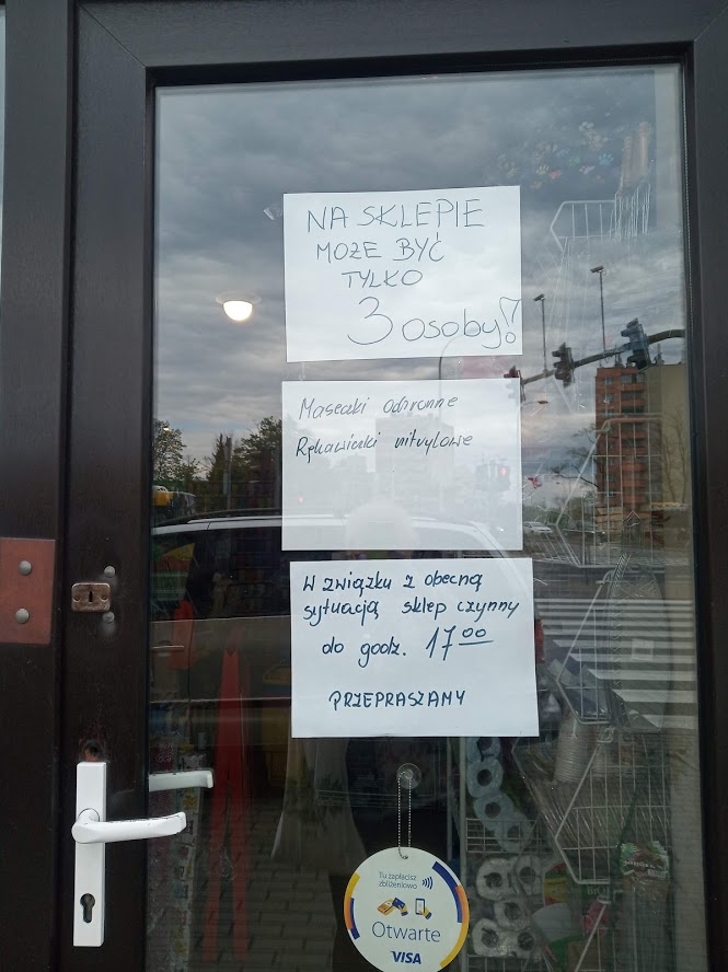 Na szybie drzwi jednego z kieleckich sklepów umieszczono napis „Na sklepie może być tylko 3 osoby”. Niby wszystko proste, zastosowanie się do tego wymagania utrudnia fakt, że sklep ma swój lokal na parterze, a nad nim są kolejne piętra. Cóż – trzeba pisać logicznie lub przystąpić do rekonstrukcji budynku. Nawet pandemia wymusza pewne działania! Piszmy poprawnie!