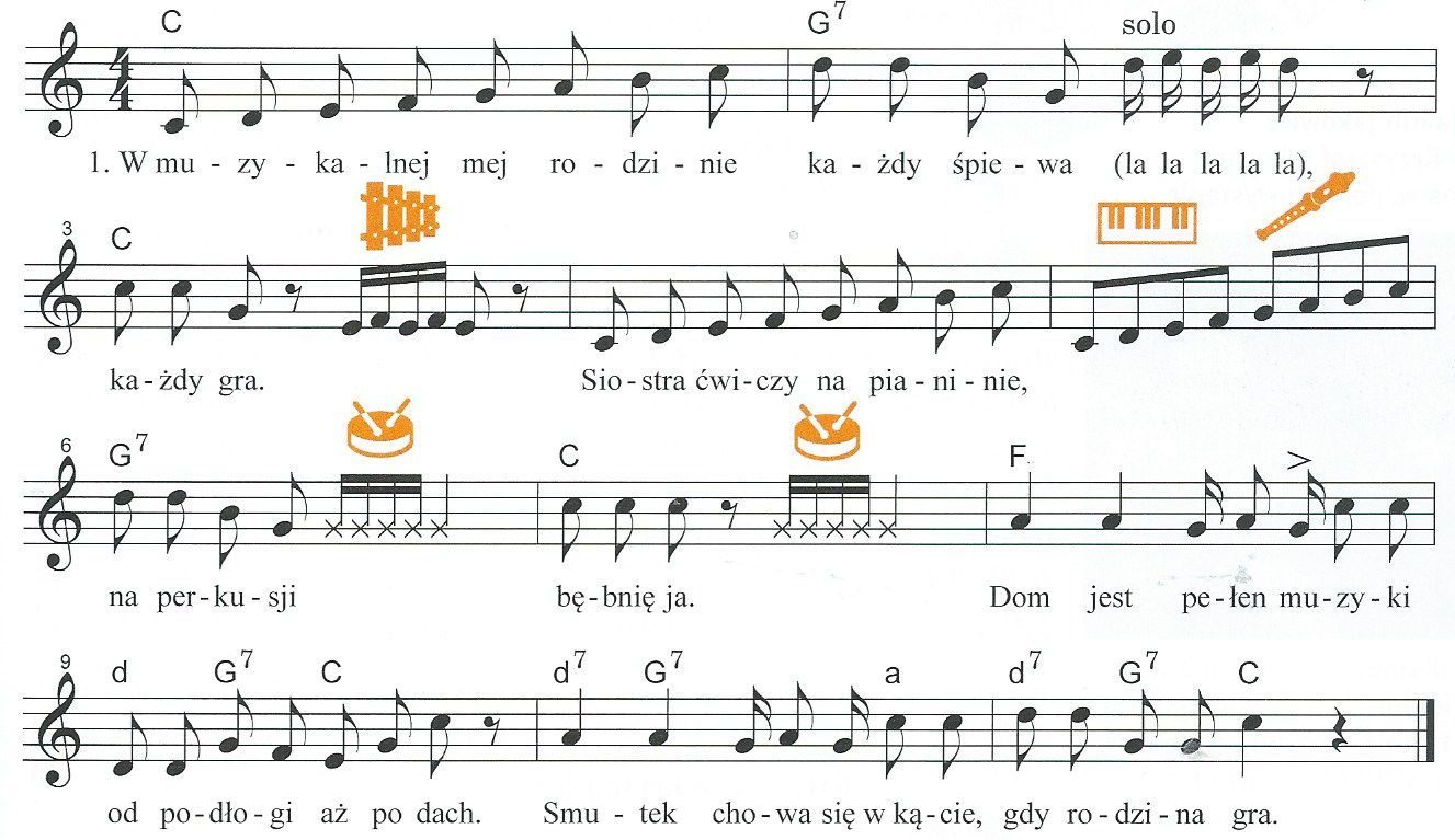 Rodzinna piosenka o muzykalnej rodzinie. Pochodzi ze śpiewnika kl. V, WSiP, autorstwa U. Smoczyńska, K. Jakóbczak-Drążek, A. Sołtysik). Twórczynią słów piosenki jest Ewa Zawistowska, muzykę stworzyła Krystyna Kwiatkowska. Wesoły i pogodny utwór o domu pełnym muzyki i uzdolnionych jego mieszkańcach.