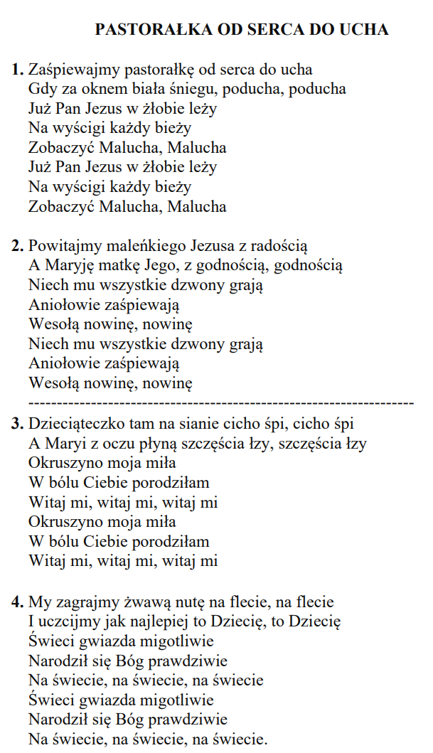 • Pastorałka „Od serca do ucha” podkreśla radosny, wspólnotowy charakter Bożego Narodzenia.