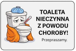 No i prezentujemy Wam kolejny przykład „polskich absurdów dnia codziennego”. Znaleźliśmy na drzwiach toalety jednego z urzędów kartkę z poważnym komunikatem: TOALETA NIECZYNNA Z POWODU CHOROBY. PRZEPRASZAMY. Tak, tak zachorowała… toaleta, nie hydraulik, nie instalacja, nie rura, ale sama toaleta – jak żywa istota – wzięła zwolnienie lekarskie, prawdopodobnie leży pod kocem, pije herbatkę z cytryną i dochodzi do siebie. Forma w zasadzie poprawna, tylko sens tej informacji niezamierzony. Autor chciał dobrze, ale wyszło jak zwykle: jedno nieprecyzyjne słowo zmieniło prostą informację w językowy żart sytuacyjny. Ta historia uczy nas, że humor czai się wszędzie, nawet na drzwiach WC.