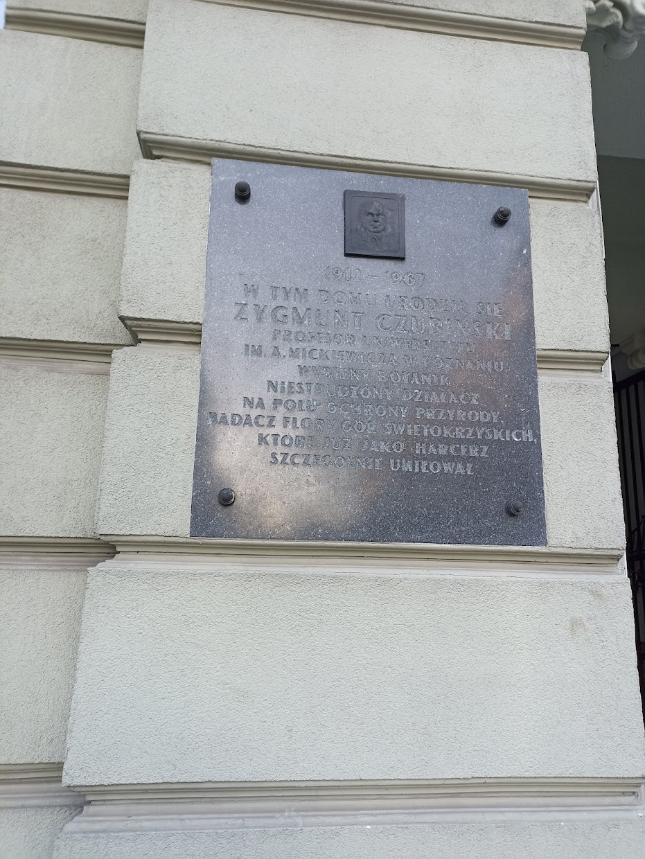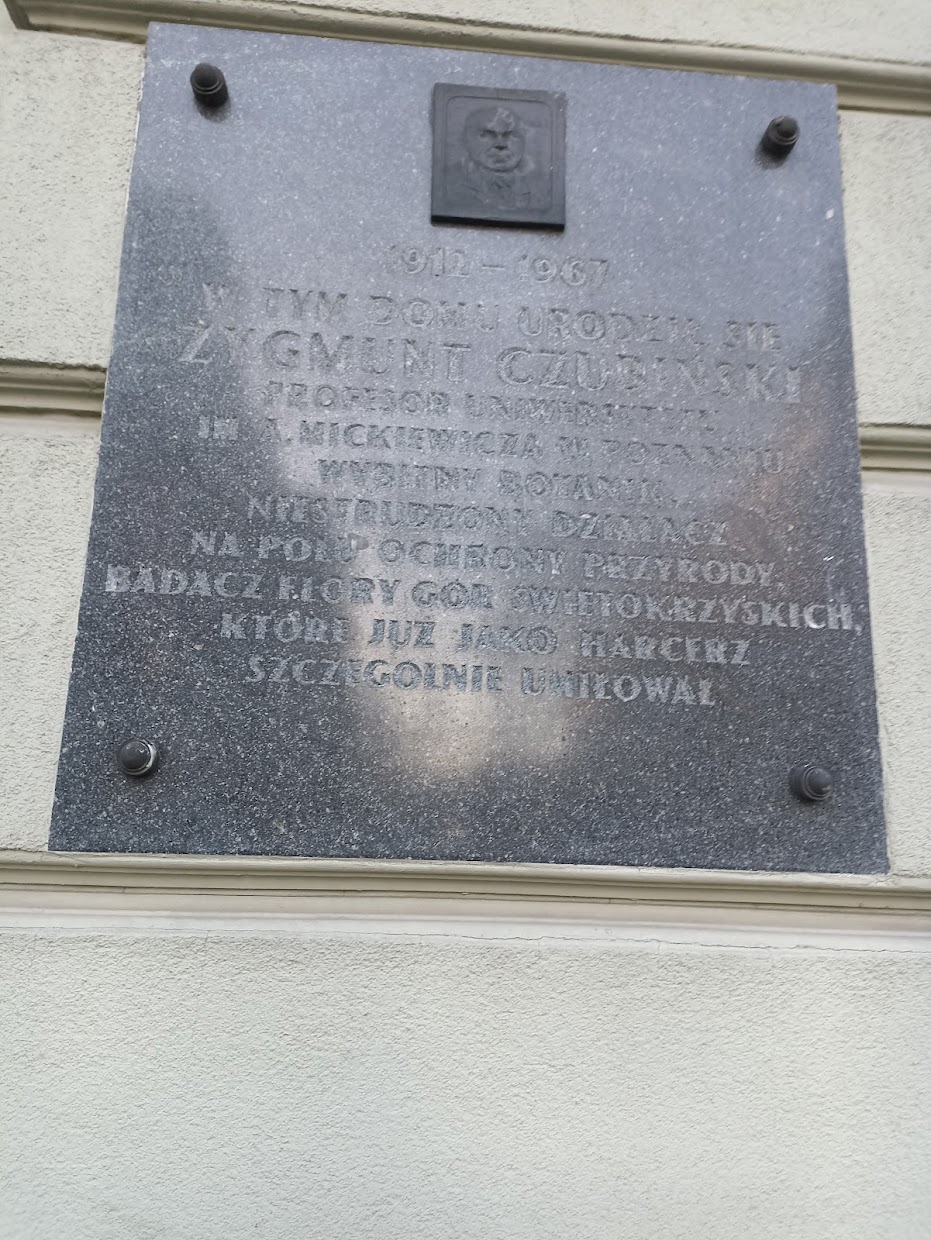 Na budynku, frontowej ścianie, przy ulicy Sienkiewicza 42 można zobaczyć tablicę pamięci  Zygmunta Czubińskiego, kielczanina z urodzenia , znanego polskiego botanika, działacza ochrony przyrody, profesora Uniwersytetu Adama Mickiewicza w Poznaniu. Spojrzyjcie  na spacerze, warto znać wybitnych rodaków z Kielc